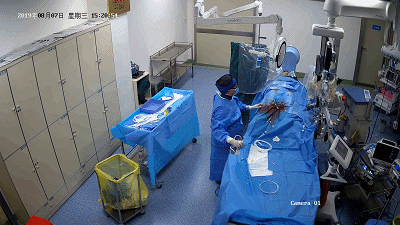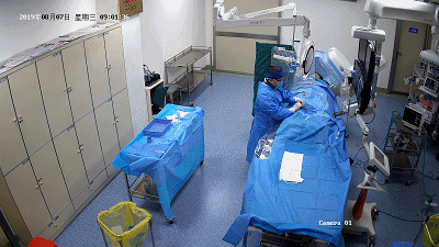 ▲陈利涛主任正在为患者进行介入治疗